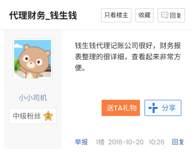 財(cái)代理記賬→企業(yè)的會(huì)計(jì)核算、記賬、報(bào)稅等一系列的工作托給錢生錢財(cái)稅完成